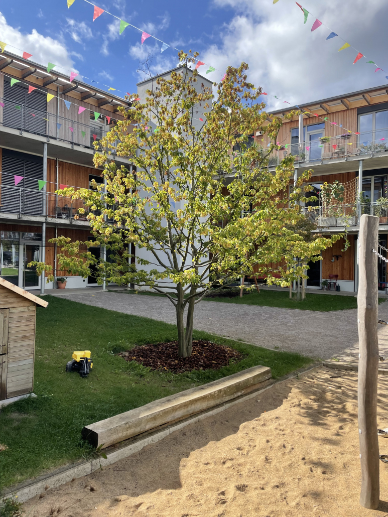 Erster Stopp waren die Außenanlagen des Hotel MOXY direkt um die Ecke an der Oststraße.